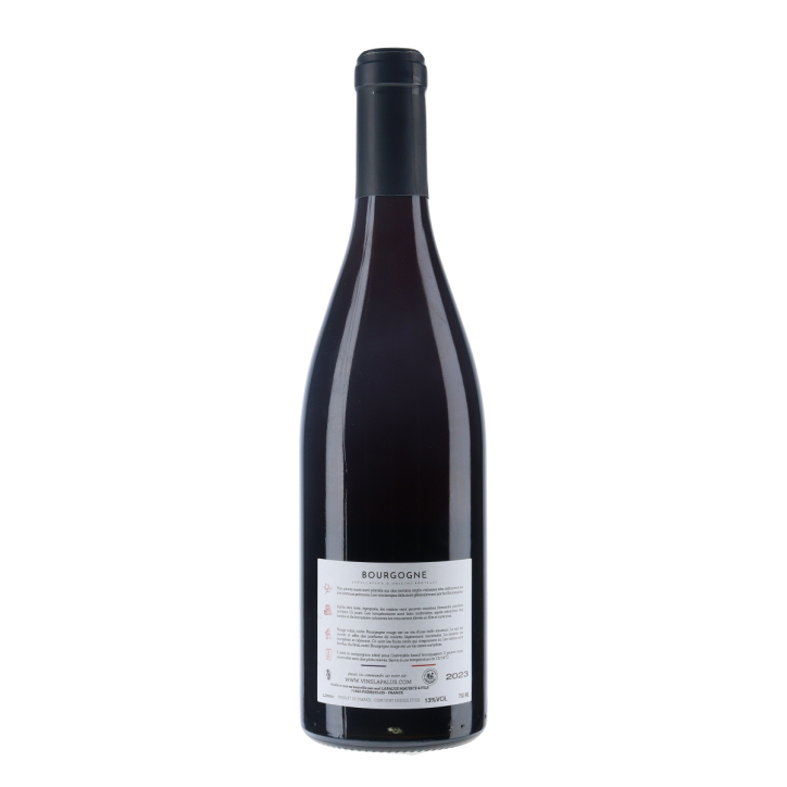Ce Bourgogne Pinot Noir 2023 présente une robe rouge rubis éclatante. Le nez est ouvert, dévoilant des parfums de violette légèrement mentholés. En bouche, le vin est complexe et aérien, avec des arômes de fruits noirs bien présents. Les tanins sont fondus, conférant au vin une texture soyeuse et élégante. La finale est persistante, laissant une impression de finesse et de complexité.
