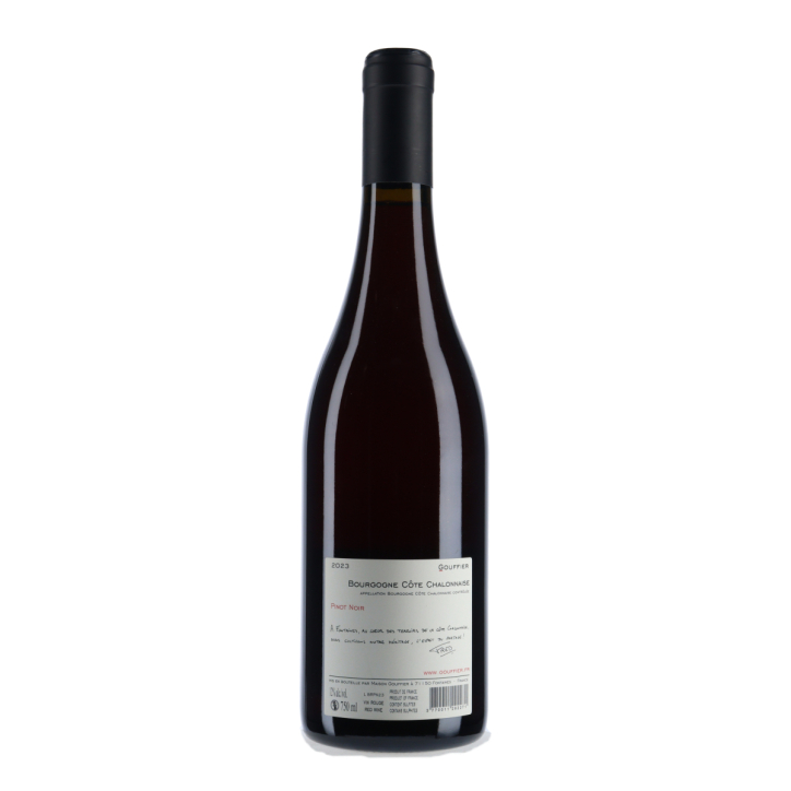 Située au sud de la Côte d’Or, l’appellation Bourgogne Côte Chalonnaise est réputée pour ses vins rouges de caractère, élaborés principalement à partir du cépage Pinot Noir. Les sols argilo-calcaires et le climat tempéré de la région permettent aux raisins de développer une belle fraîcheur et une complexité aromatique. Les vins de cette appellation, comme ce Pinot Noir du Domaine Gouffier, se distinguent par leur finesse, leur équilibre et leur potentiel de garde.