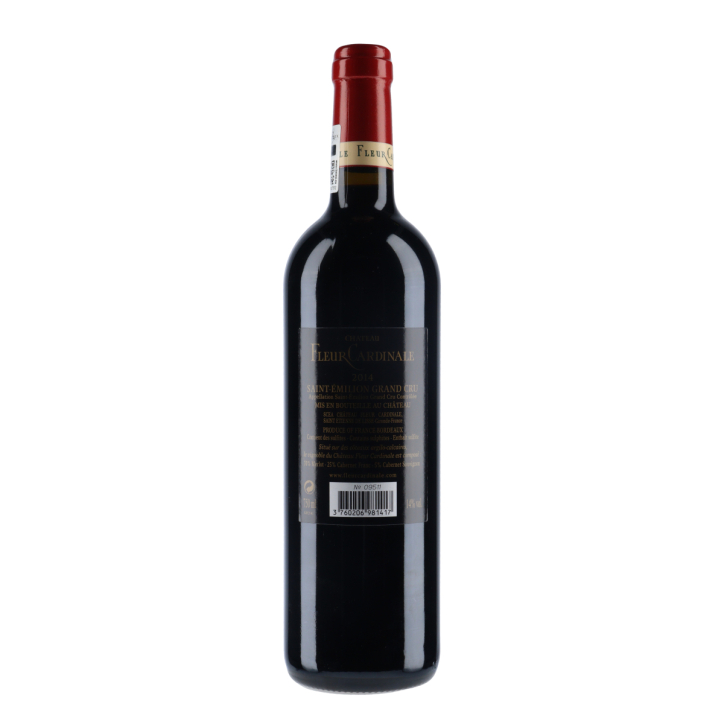 Le Château Fleur Cardinale 2014 est un vin rouge issu de l'appellation Saint-Émilion Grand Cru, située dans la prestigieuse région viticole de Bordeaux, en France. Ce millésime est élaboré principalement à partir de Merlot (environ 75%), complété par du Cabernet Franc et du Cabernet Sauvignon, cépages typiques de la rive droite de Bordeaux. Le vin titre environ 14% d'alcool et a bénéficié d'un élevage de 12 à 14 mois en barriques de chêne français, avec une proportion importante de bois neuf, ce qui lui confère une complexité et une structure remarquable.