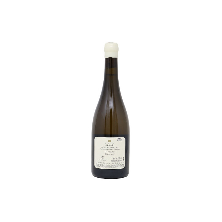 Le Grand Cru Les Preuses est un vin à la fois minéral et crémeux. Le nez exhale des arômes de fruits à chair blanche, de noisette grillée et de crème pâtissière. Soutenue par des notes iodées, typique du terroir, la bouche et puissante et incisive. Un très beau vin, intense et racé.
