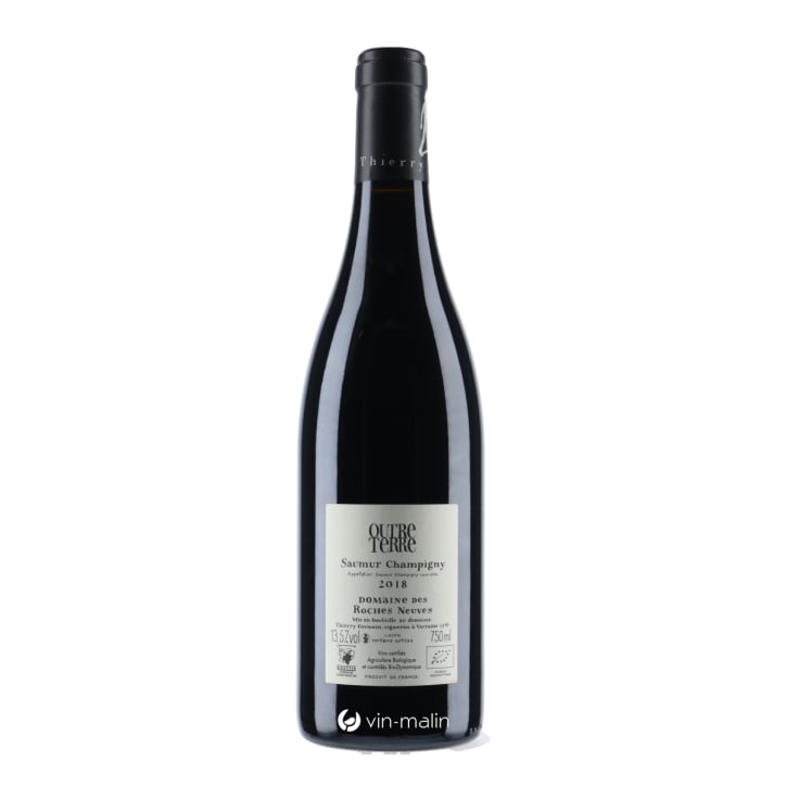 Le vin rouge Saumur "Outre Terre" 2018 du domaine des Roches Neuves est entièrement produite à partir du cépage cabernet franc. Les vignes du domaine sont situées sur un terroir de sable reposant sur du calcaire. Pour ce vin rouge les vendanges sont réalisées à la main. La macération se fait sur peau en amphore géorgienne de 8 hl durant 8 mois. L'élevage en fûts dure 12 mois et la mise en bouteilles se fait à la cave, sans filtration et sans ajout particulier.