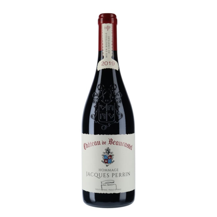 Ce Châteauneuf du Pape Hommage à Jacques Perrin 2019 est un vin rouge du Châteaux de Beaucastel, domaine emblématique de la Vallée du Rhône.