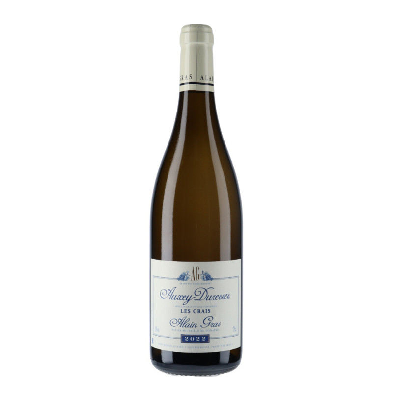 L'Auxey-Duresses "Les Crais" du Domaine Alain Gras est un vin blanc de Bourgogne issu du cépage Chardonnay. L'Appellation Auxey-Duresses est située après le village Meursault, dans les Hautes-Côtes-de-Beaune et produit des vins blancs et vins rouges. Les vignes d'Auxey-Duresses sont dans le prolongement de Volnay et Monthélie, sur la montagne du Bourdon. Les vignes sont situées sur un sol marno-calcaire très caillouteux. Ce terroir offre des vins calcaires.