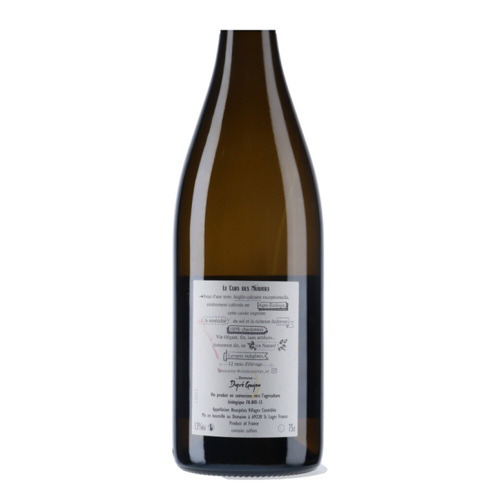 Ce Beaujolais-Villages "Clos des Mûriers" blanc 2020 du Domaine Dupré Goujon est reconnu pour sa qualité et sa finesse.