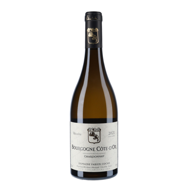 Le Bourgogne Côte d'Or Chardonnay 2021 du Domaine Fabien Coche est un vin blanc de Bourgogne frais, minéral et fruité.