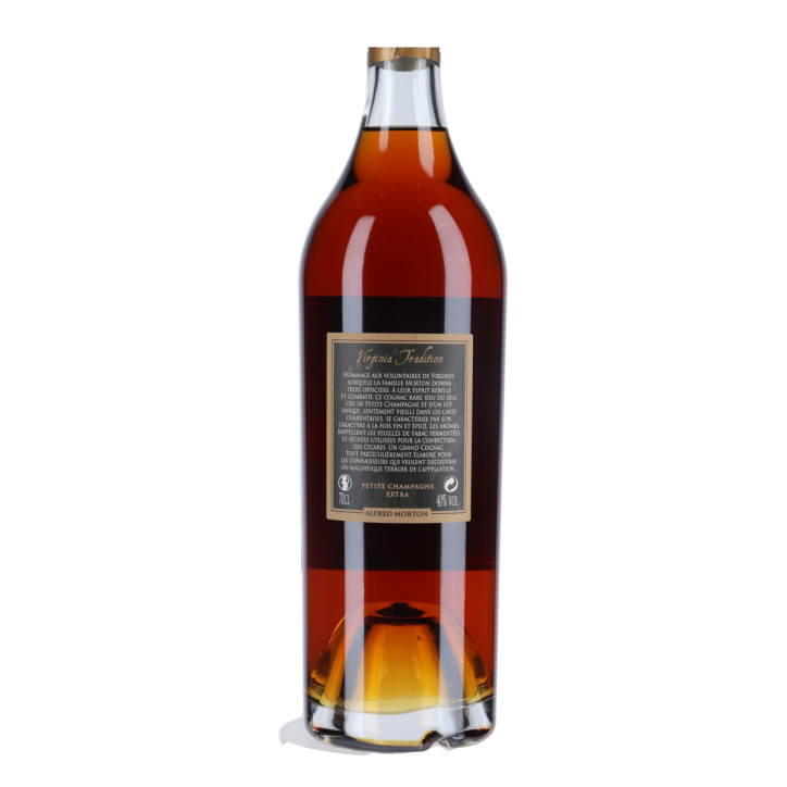 Ce cognac produit par la Maison Alfred Morton est un hommage aux volontaires de Virginie. En effet, ce cognac d'une extrême rareté provient exclusivement du seul cru de Petite Champagne. Après de longues années de vieillissement en caves charentaises, il se distingue par son raffinement, sa droiture et son côté épicé. En bouche, on retrouve une remarquable persistance, une texture veloutée et une personnalité forte.
