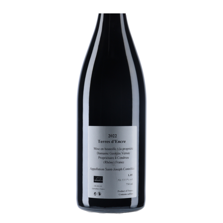 Le Saint-Joseph "Terres d'Encre" 2022 du Domaine Georges Vernay est une expression remarquable de la Syrah au sein de l'appellation Saint-Joseph, l'une des appellations prestigieuses de la Vallée du Rhône Nord.