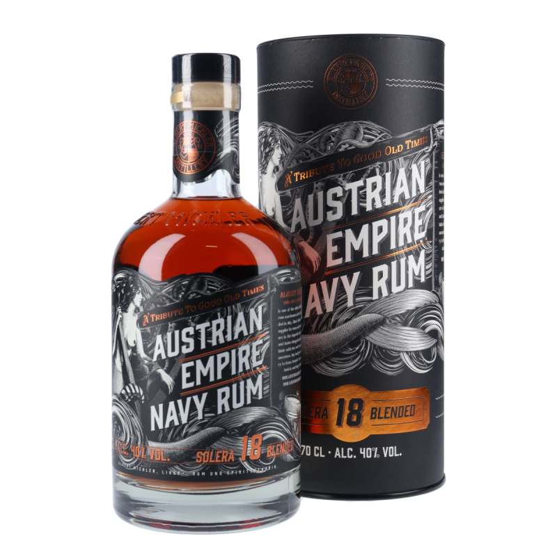 Rhum de la marine de l'empire autrichien vieilli 18 ans selon la méthode Solera.