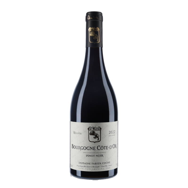 Le Bourgogne Côte-D'Or Pinot Noir 2022 du Domaine Fabien Coche est un vin rouge issu du cépage Pinot Noir, emblématique de la région de Bourgogne. Ce vin est produit dans l'appellation Bourgogne Côte-D'Or, qui s'étend sur les terroirs variés de la Côte d'Or, couvrant à la fois la Côte de Beaune et la Côte de Nuits. Le domaine, situé à Meursault, est engagé dans une viticulture durable, en respectant les principes de l'agriculture biologique, et met un point d'honneur à produire des vins authentiques et de haute qualité.