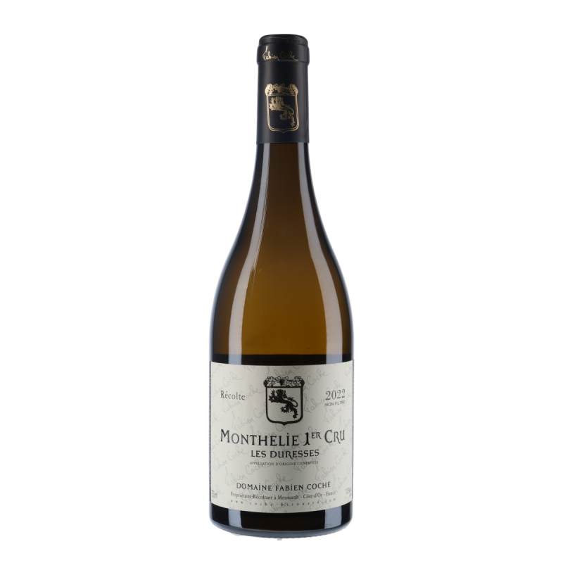 Le Monthelie 1er Cru "Les Duresses" 2022 du Domaine Fabien Coche est un vin blanc élaboré à partir du cépage Chardonnay, provenant de l'appellation Monthelie en Bourgogne. Le climat "Les Duresses" est reconnu pour ses sols argilo-calcaires et son exposition favorable, permettant de produire des vins blancs d'une grande élégance et complexité.