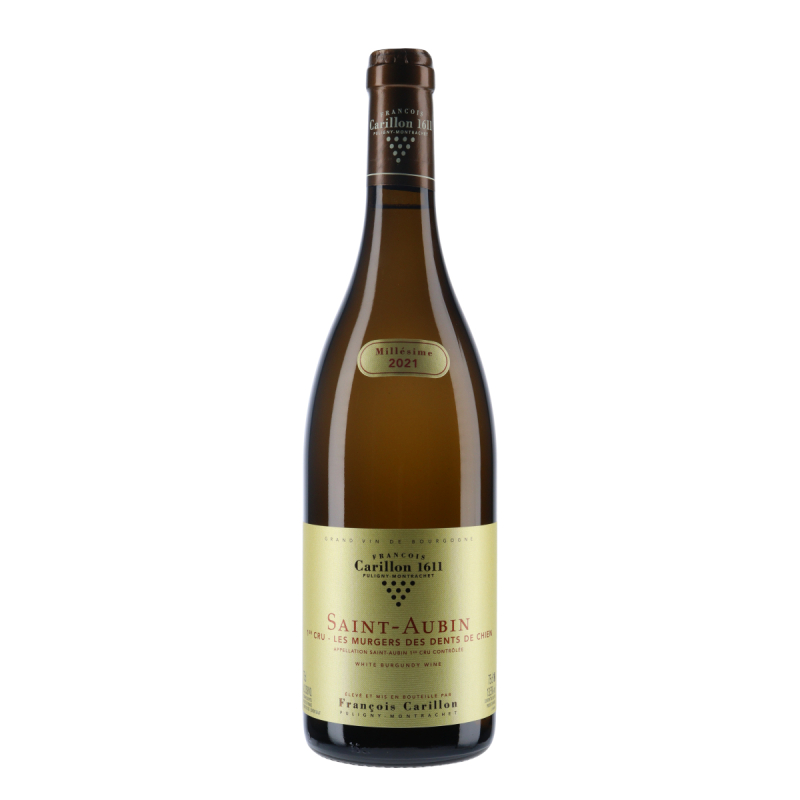 Le Saint-Aubin 1er Cru "Les Murgers des Dents de Chien" 2021 du Domaine François Carillon est un vin blanc de Bourgogne issu d'une parcelle emblématique surplombant les prestigieux Grands Crus de Puligny-Montrachet. Acquise par le domaine en 2013, cette parcelle doit son nom aux pierres pointues qui rappellent des dents de chien, caractéristiques de son sol calcaire et caillouteux. Ce vin, élaboré à partir de vignes âgées de 31 ans, se distingue par sa richesse et sa profondeur, offrant une expression unique du terroir de Saint-Aubin.