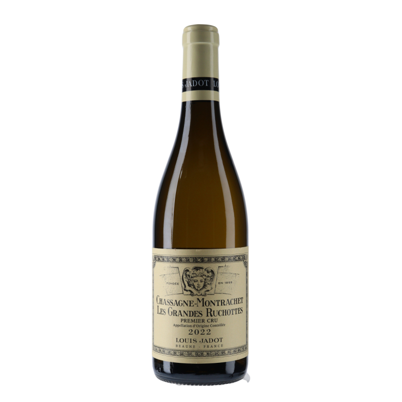 Le Chassagne-Montrachet 1er Cru Les Grandes Ruchottes 2022 du Domaine Louis Jadot arbore une robe dorée lumineuse, signe de sa belle concentration. Au nez, il révèle des arômes complexes de fleurs blanches, de fruits à chair blanche, tels que la poire et la pêche, avec des subtiles notes minérales, caractéristiques de son terroir. En bouche, il offre une belle structure, alliant fraîcheur et rondeur, avec une finale persistante et élégante, portée par une minéralité marquée.