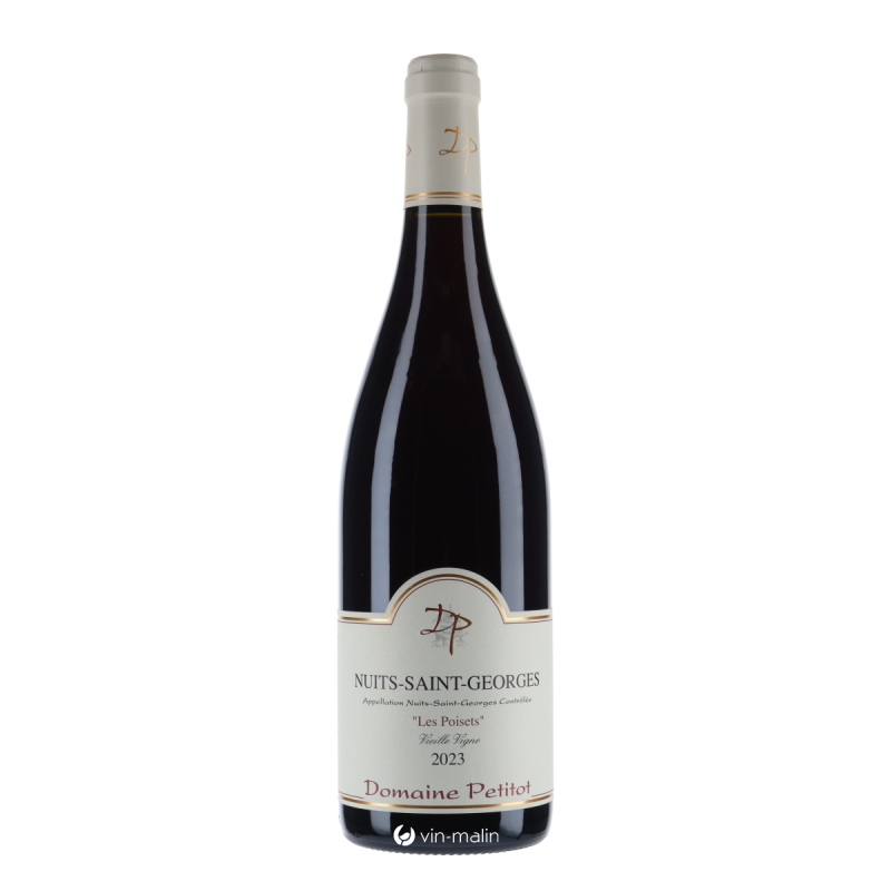 Le Nuits-Saint-Georges "Les Poisets" Vieilles Vignes 2023 du Domaine Petitot est une cuvée emblématique de ce domaine familial, révélant toute la complexité et l'élégance du terroir bourguignon. Situé au sud de la commune de Nuits-Saint-Georges, le climat "Les Poisets" bénéficie de sols marno-calcaires profonds, offrant des vins d'une grande profondeur aromatique et d'un excellent potentiel de garde. Issu de vieilles vignes de 55 ans, ce millésime 2023 séduit par son équilibre entre puissance et finesse, fidèle à l’expression du Pinot Noir dans cette prestigieuse appellation.