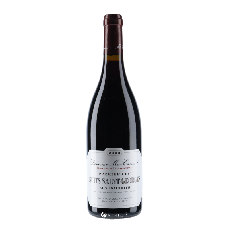 Le Nuits-Saint-Georges 1er Cru "Aux Boudots" 2022 présente une robe rubis profonde aux reflets grenat. Le nez s'ouvre sur des arômes de fruits noirs mûrs, tels que la mûre et la cerise noire, accompagnés de notes florales de pivoine, de nuances fumées et d'une touche de sous-bois. En bouche, le vin offre une texture soyeuse, une belle densité et une longueur remarquable, avec une finale élégante et persistante.