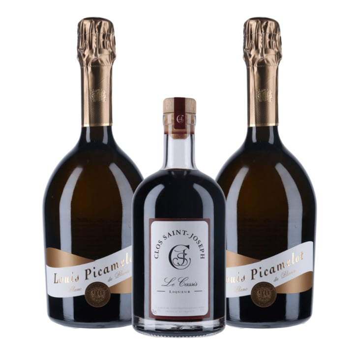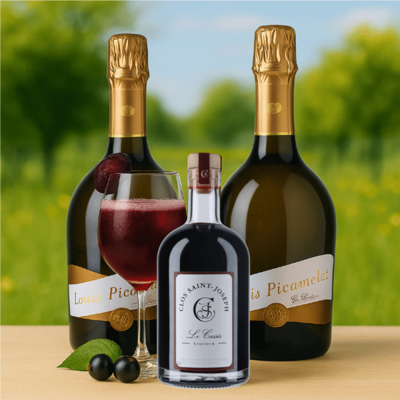 Avec 1 bouteille de crème de cassis Clos Saint Joseph et 2 bouteilles de crémant Louis Picamelot, vous pouvez créer environ 15 Kir Royal artisanaux. Une version haut de gamme, intense et équilibrée du célèbre apéritif bourguignon.
