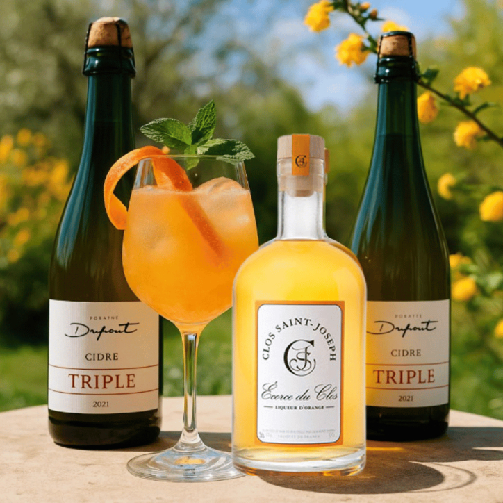 Avec 1 bouteille de liqueur d’orange Clos Saint-Joseph et 2 bouteilles de cidre triple, vous pouvez préparer environ 12 cocktails L’agrum’ Cidre. L’alliance du cidre frais et de la liqueur d’agrumes crée un apéritif léger, expressif et ensoleillé, à servir simplement sur glaçons avec une tranche d’orange.