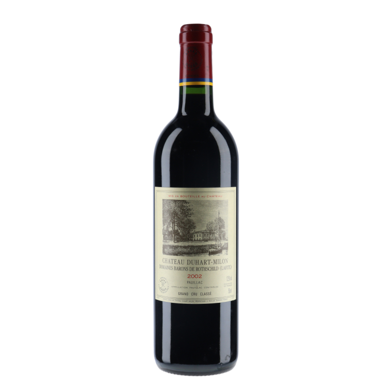 Le Château Duhart-Milon Rothschild 2002 se distingue par sa robe rouge rubis profonde, aux reflets grenat. Le nez est élégant et complexe, dévoilant des arômes de fruits noirs comme le cassis, la mûre et la cerise noire, associés à des notes florales subtiles. Des nuances épicées de poivre, de réglisse et de cèdre se mêlent à des touches de tabac, de chocolat noir et de sous-bois, héritées de son élevage en barriques. En bouche, ce vin est puissant et structuré, avec des tanins fermes mais fins. Les saveurs de fruits noirs sont complétées par des notes minérales et une légère touche boisée. La finale est longue, persistante et harmonieuse, marquée par une belle fraîcheur et une grande élégance.