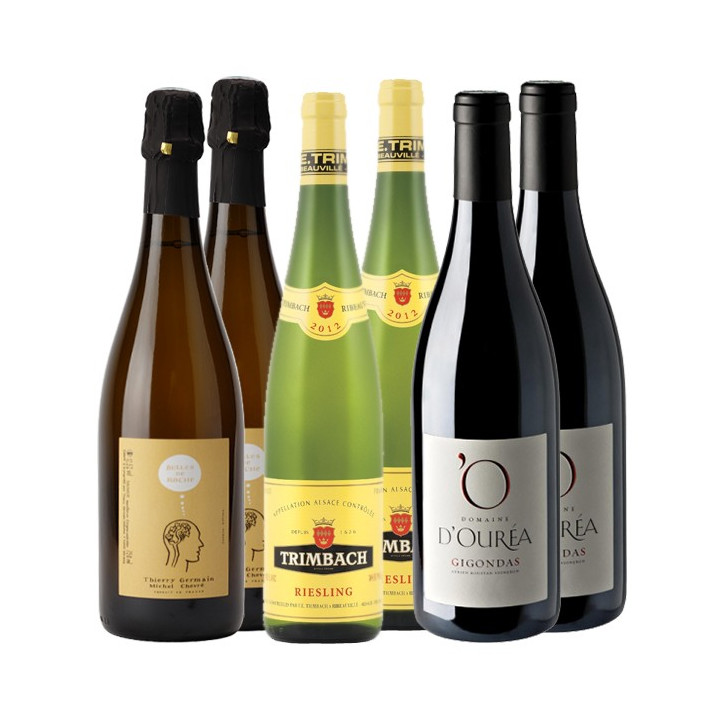 Un très bel assortiment de 6 bouteilles ! 2 effervescents, 2 blancs et 2 rouges, parfaits pour accompagner un bon dîner entre amis.