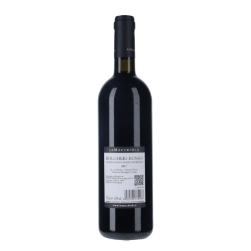 Le Macchiole Bolgheri Rosso 2017 présente une robe rouge rubis intense et profonde. Au nez, il dévoile des arômes généreux de fruits noirs mûrs tels que la mûre et le cassis, accompagnés de notes épicées et légèrement fumées. En bouche, ce vin offre une texture riche et veloutée, avec des tanins bien intégrés et une belle fraîcheur. Les saveurs de fruits noirs se marient à des touches de réglisse et de tabac, créant une expérience gustative complexe et harmonieuse, avec une finale persistante.