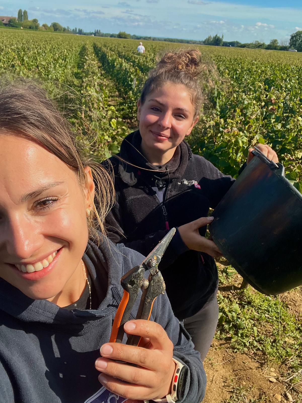Nous avons eu la chance de couper des raisins sur l’appellation de Meursault Village, et même sur quelques Premiers Crus. Imaginez-vous au milieu de rangées de vignes verdoyantes, avec une vue imprenable sur les coteaux de Bourgogne, baignée par une douce lumière automnale. Un moment unique où chaque coup de sécateur rapproche un peu plus le vigneron de la cuvée tant espérée.