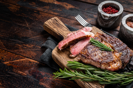 Accord parfait : Une côte de bœuf maturée servie avec une sauce aux cèpes.