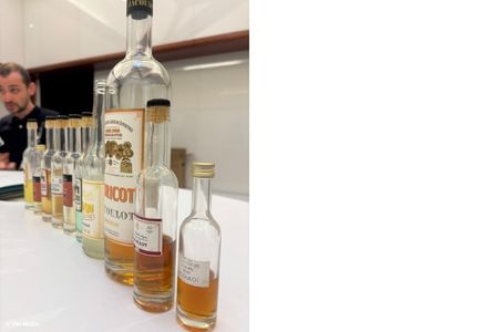 Nous avons commencé la dégustation par le Marc de Bourgogne et la Fine de Bourgogne, deux expressions très différentes d’un même terroir. Dégustés l’un après l’autre, la distinction est évidente : le marc est boisé, puissant, presque viril, tandis que la fine séduit par sa douceur, sa rondeur, presque féminine.