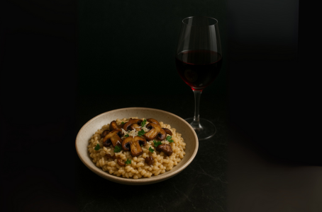 - Vin de France Savagnin “Jurassique” 2022 – Théo Dancer (profil jurassien, amplitude & salinité) avec un ramen miso, dashi, poêlée de shiitakés, polenta aux cèpes.