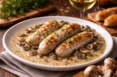 Recette : boudin blanc à la crème et aux champignons (bistrot chic)